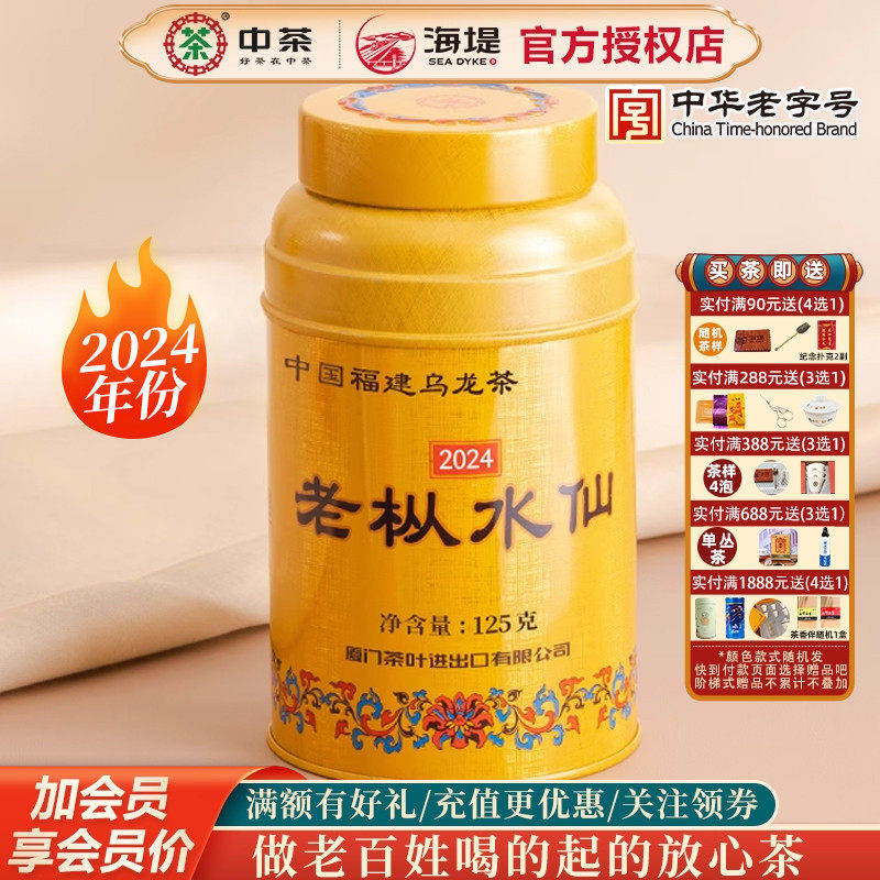 海堤茶叶乌龙茶2024年金罐老枞水仙2025年金罐限量125克/罐足火