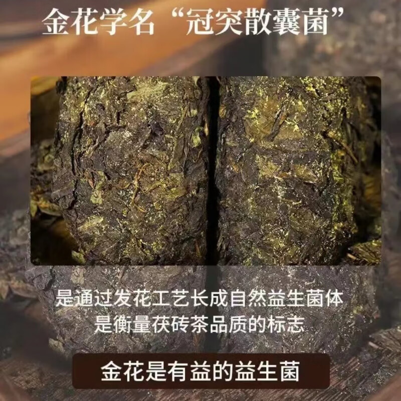望蓝川【12砖十年金茯茶】湖南安化陈年黑茶手筑金花爆满茯砖茶叶220克 一砖试饮220克(送茶刀)