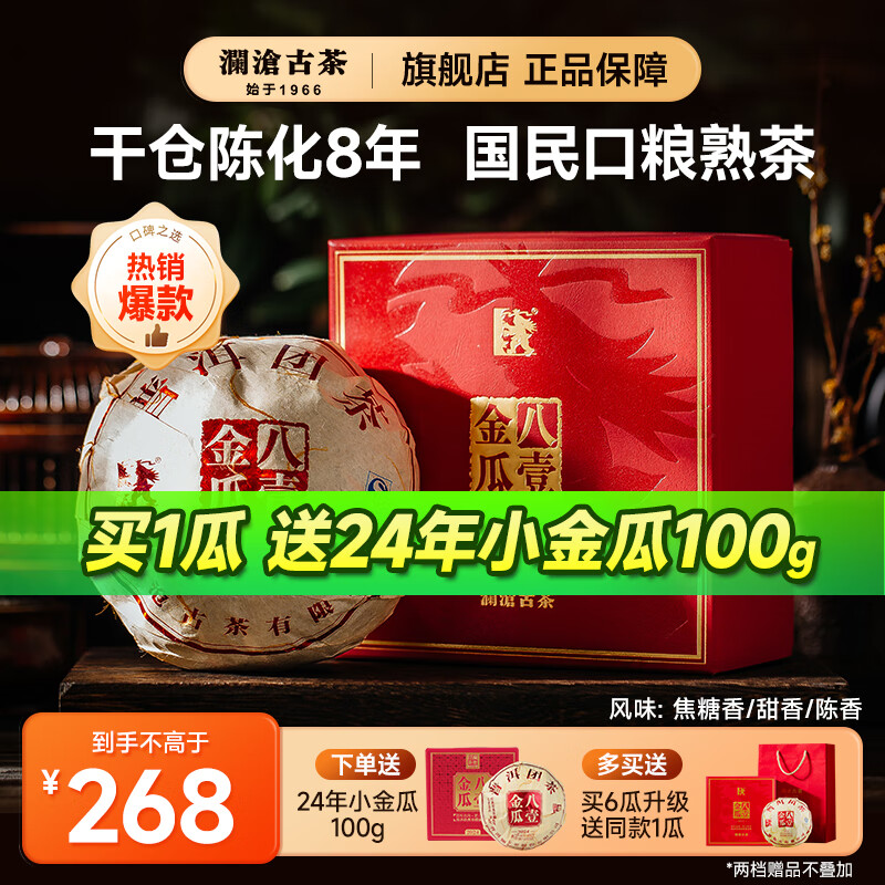澜沧古茶八一金瓜普洱熟茶 云南八壹熟普宫廷贡瓜茶叶礼盒装500g茶叶礼盒 17年八壹金瓜8年陈
