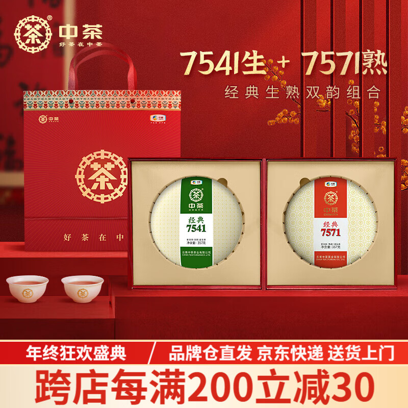 中茶茶叶普洱茶经典唛号茶7571+7541生熟组合配送礼盒节日茶叶礼盒 7541+7571组合(357g*2饼)