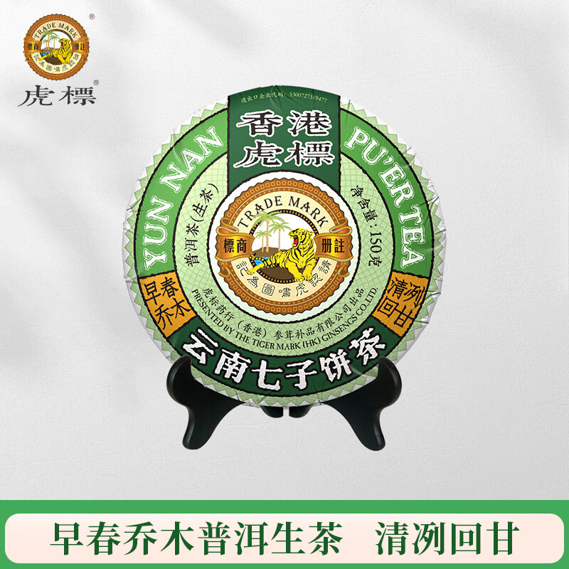 虎标 茶叶 早春乔木 普洱生茶 云南临沧普洱茶 普洱茶饼357g盒装
