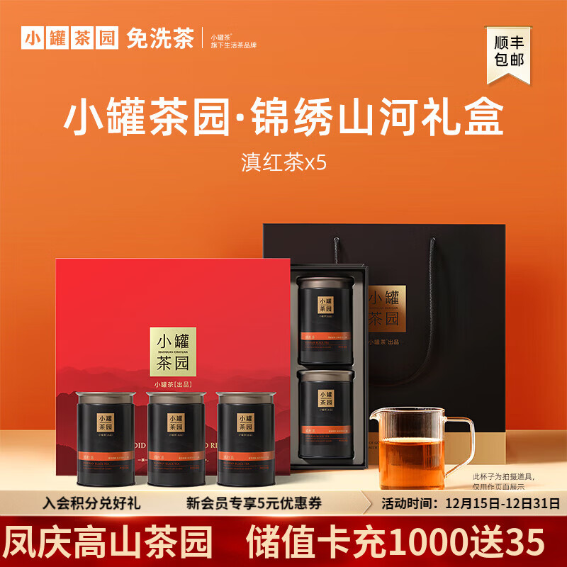 小罐茶园茶叶流金系列一级红茶滇红60g 茶叶自己喝 锦绣山河礼盒-滇红60g*5罐