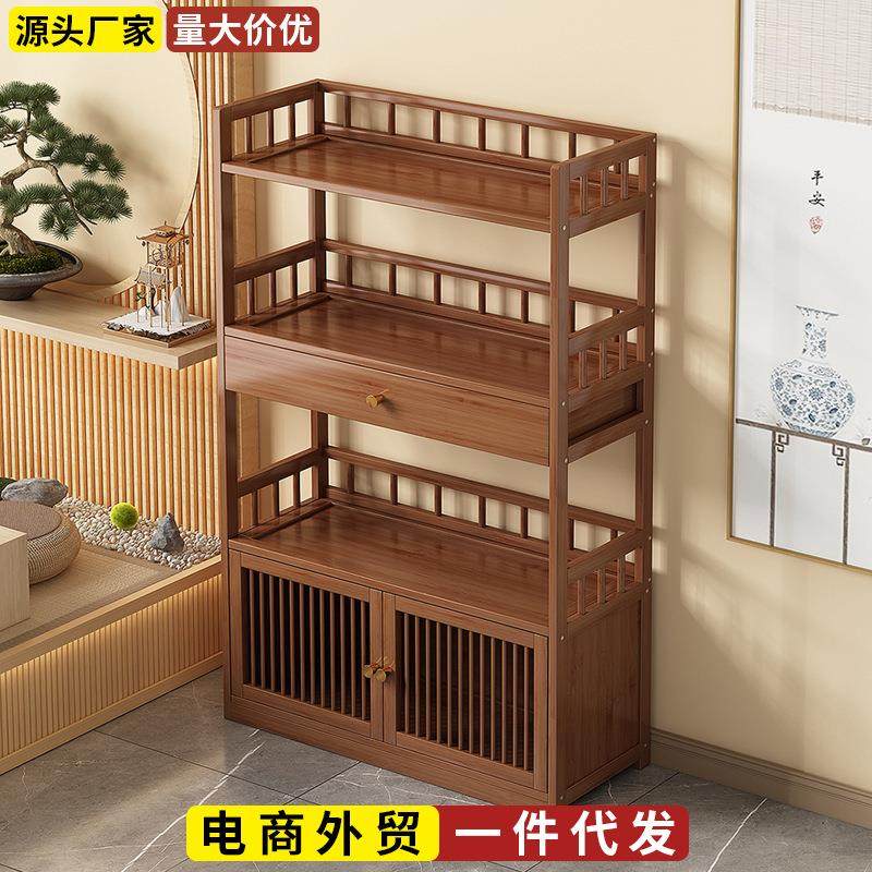 实木博古架小型茶水柜茶叶茶具收纳架茶室置物架中式多层储物架子