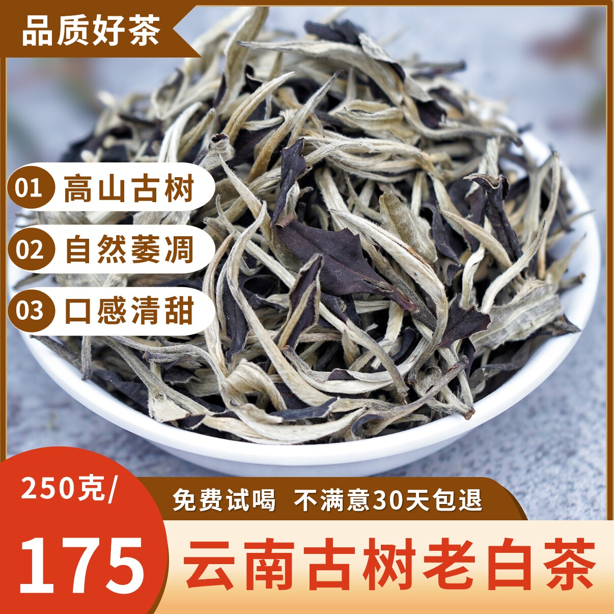 云南古树老白茶茶叶月光白茶美人白冰白散花香春茶250g盒装