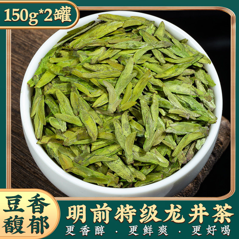 特级明前龙井杭州高山绿茶豆香味茶叶散装罐装300g