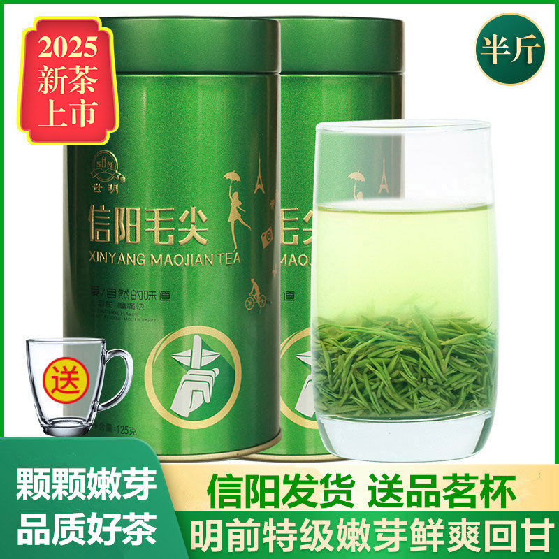 正宗信阳毛尖2025年新茶叶绿茶明前特级嫩芽全芽茶农直销散装500g