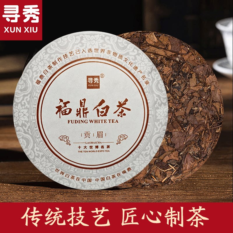 寻秀2020年高山福鼎白茶饼贡眉紧压茶叶枣香老白茶7饼2100g礼盒装