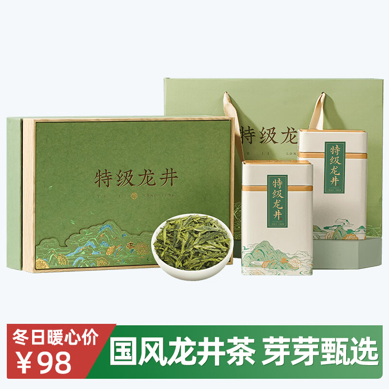 君品臻茶叶绿茶 雨前特级龙井茶礼盒装180g 年货节送长辈礼品 源头直发