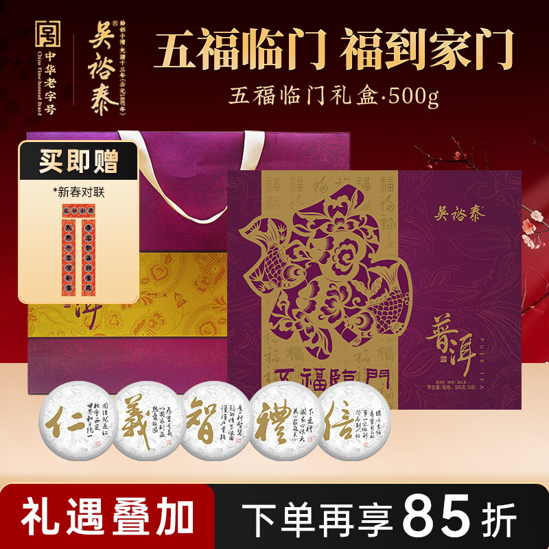 吴裕泰普洱熟茶 普洱茶五福临门/500g盒 过节茶叶礼盒