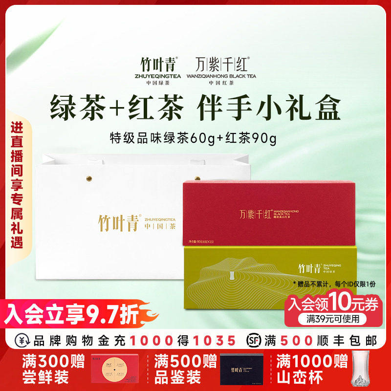 组合】竹叶青茶叶特级品味绿茶60g+万紫千红红茶90g礼盒送礼长辈
