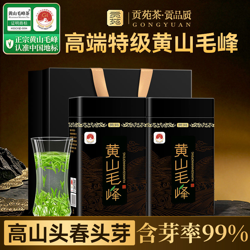 贡苑头采黄山毛峰特级一等250g绿茶新茶安徽茶叶礼盒装官方旗舰店