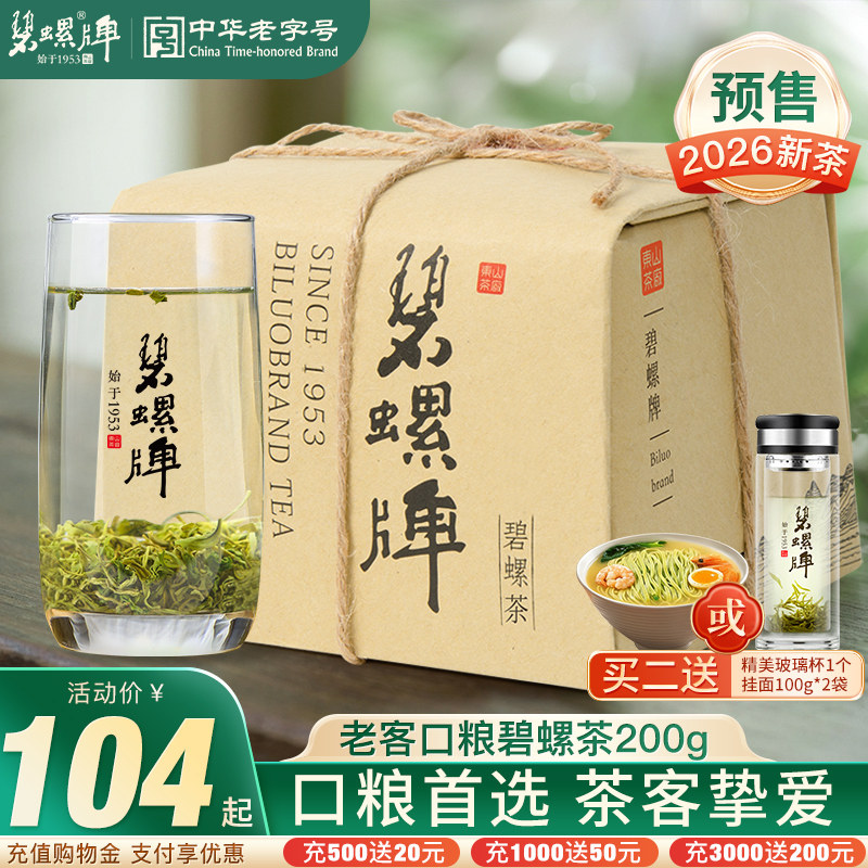 2026年新茶正宗苏州碧螺春茶叶雨前特级绿茶炒青口粮东山茶厂200g