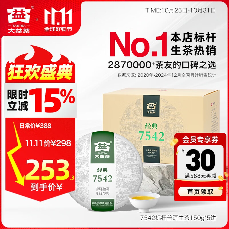 大益茶叶普洱茶 7542经典标杆普洱生茶 茶叶自饮 口粮性价比生普 1盒装(2201批次)150g*5饼