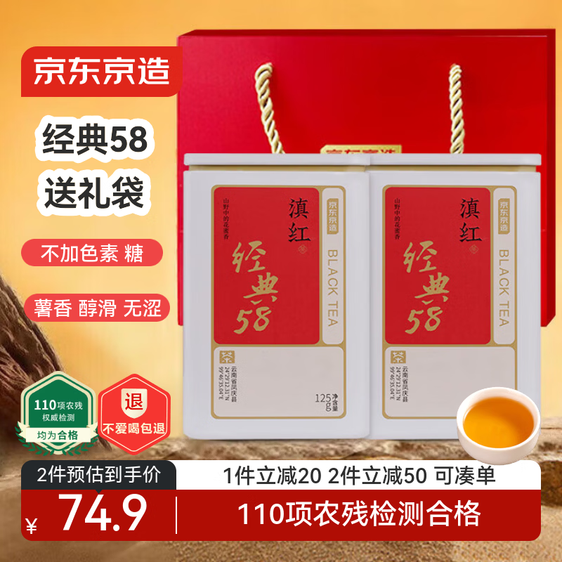 京东京造 云南凤庆滇红红茶经典58薯香浓香250g新茶茶叶伴手礼盒自营送礼