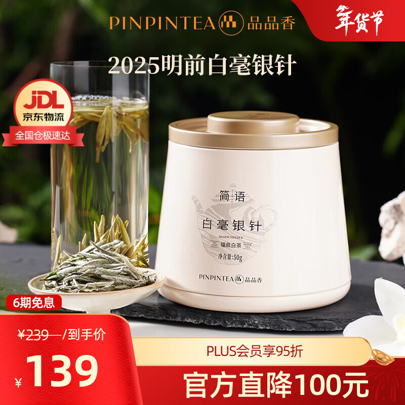 品品香福鼎白茶 明前白毫银针 茶叶自己喝 收藏送人高端礼品 【明前手采】2025白毫银针 自饮装 50g*1罐