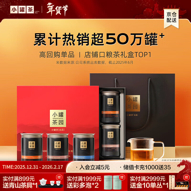 小罐茶园组合茶叶礼盒 流金系列锦绣山河滇红铁观音普洱 5罐310g礼盒装