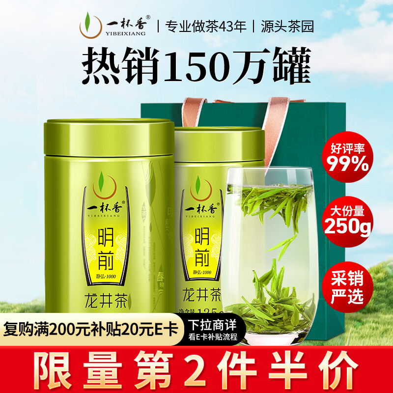 一杯香茶叶绿茶正宗明前龙井茶250g2025新茶过年货礼盒装送礼自己喝自饮