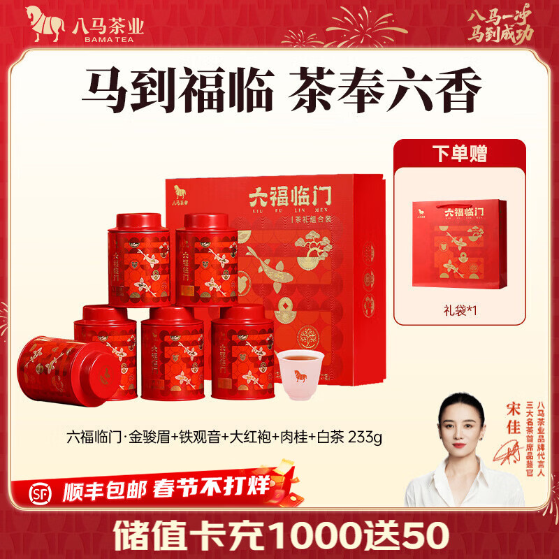 八马茶业 组合茶叶礼盒 红茶金骏眉/大红袍/肉桂/铁观音/白茶/冰岛普洱 【六大茗茶组合】233g
