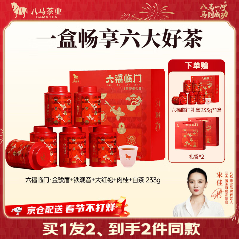 八马茶业 六大茶叶组合 大红袍 肉桂 红茶金骏眉 铁观音 白茶寿眉 送礼 礼盒装233g【送礼袋】