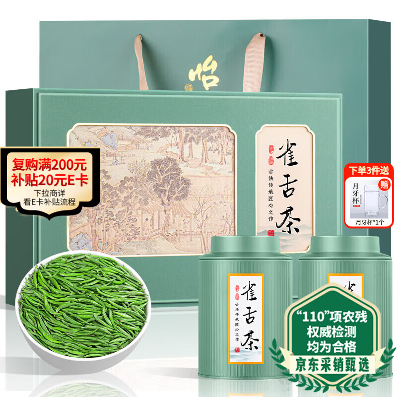 立香园节日送礼绿茶碧螺春头春嫩芽明前新茶高山云雾茶罐装茶叶礼盒装 125g*2罐 配礼袋