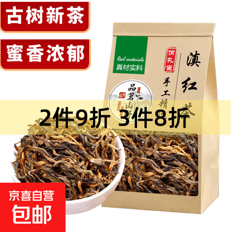 滇红茶金丝云南古树红茶黄芽头金芽新茶功夫红茶浓香制奶茶茶叶 古树滇红茶优级15克/袋