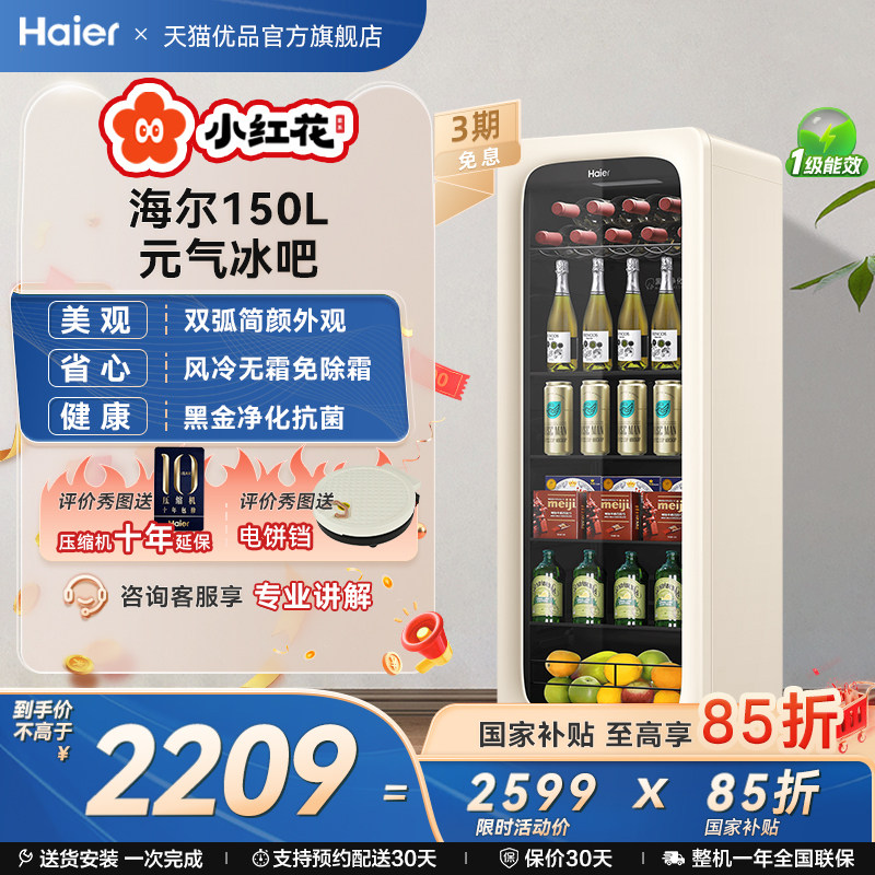海尔冰吧92升家用客厅办公室茶叶酒柜冷藏冷柜150L保鲜柜167L冰箱