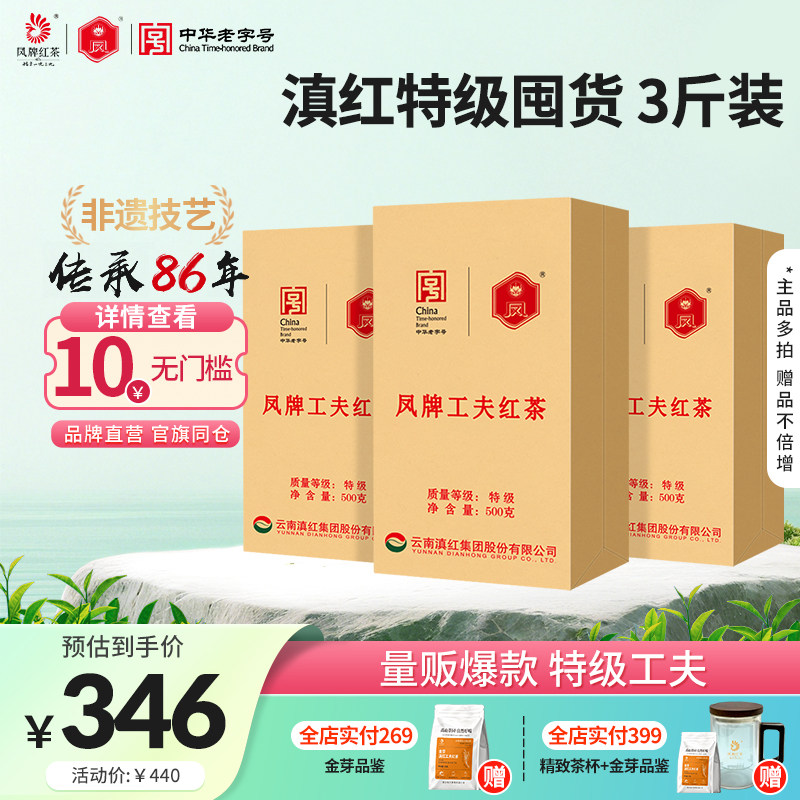 【滇红特级 3斤】凤牌红茶正宗云南滇红特级工夫茶叶500g*3袋囤货