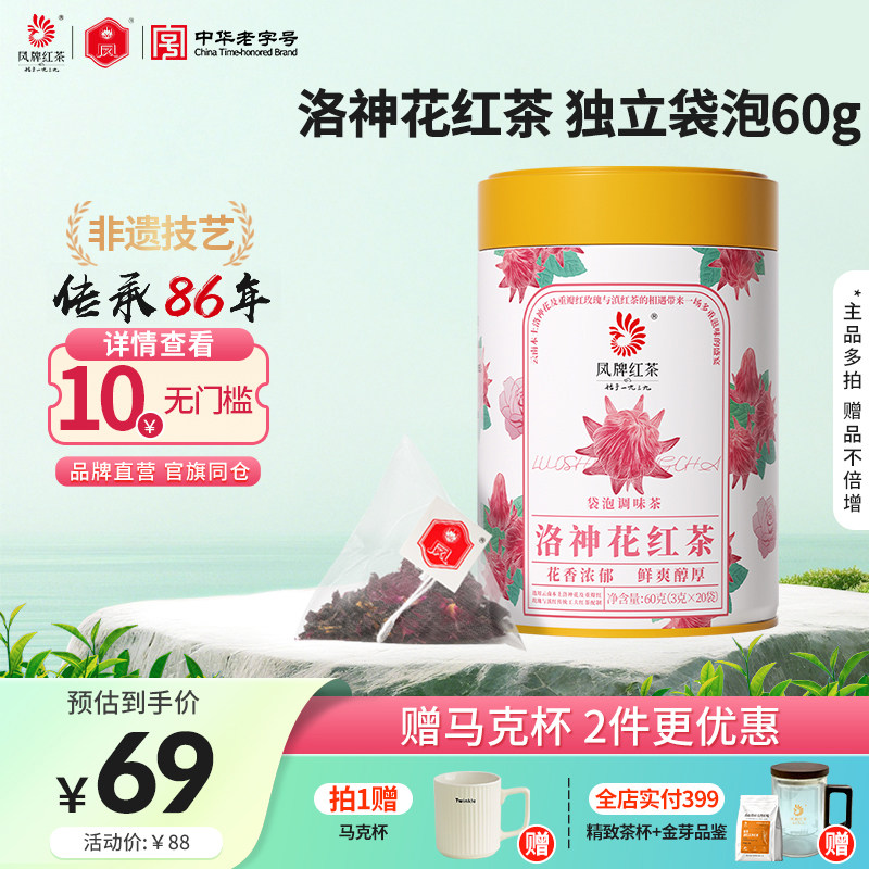 【新品】凤牌滇红洛神花红茶调味鲜爽花香茶包袋泡茶云南茶叶60g