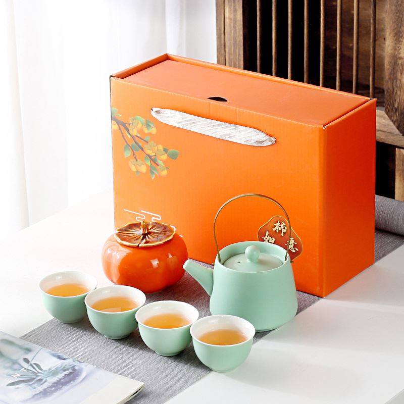 年会柿柿如意茶具柿子茶叶罐套装婚礼喜庆商务开业活动礼品logo