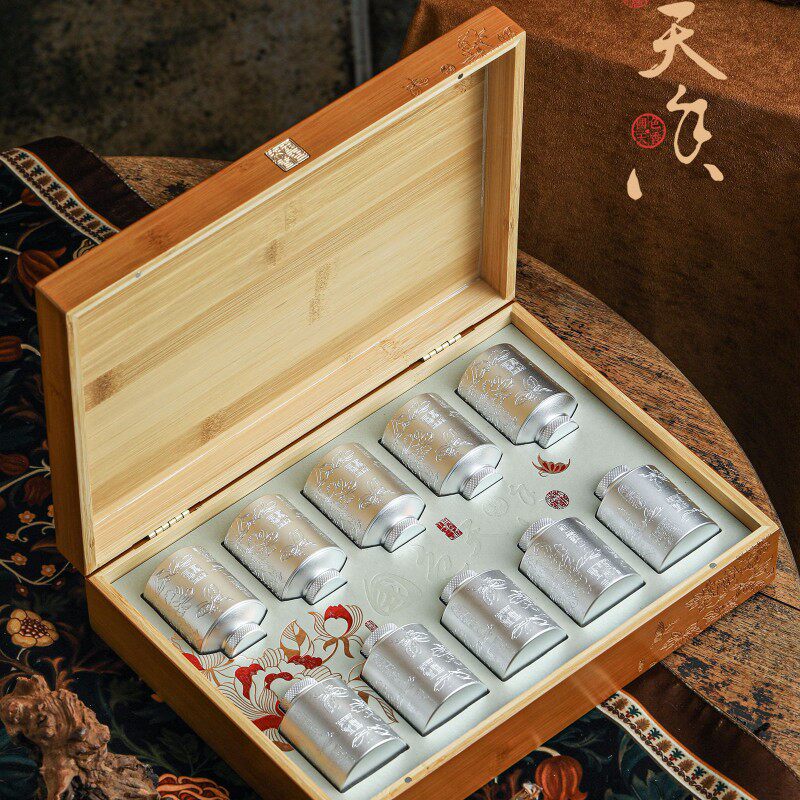 国色竹制高档锡罐10小罐茶叶包装盒空盒岩茶10泡红茶绿茶银针通用