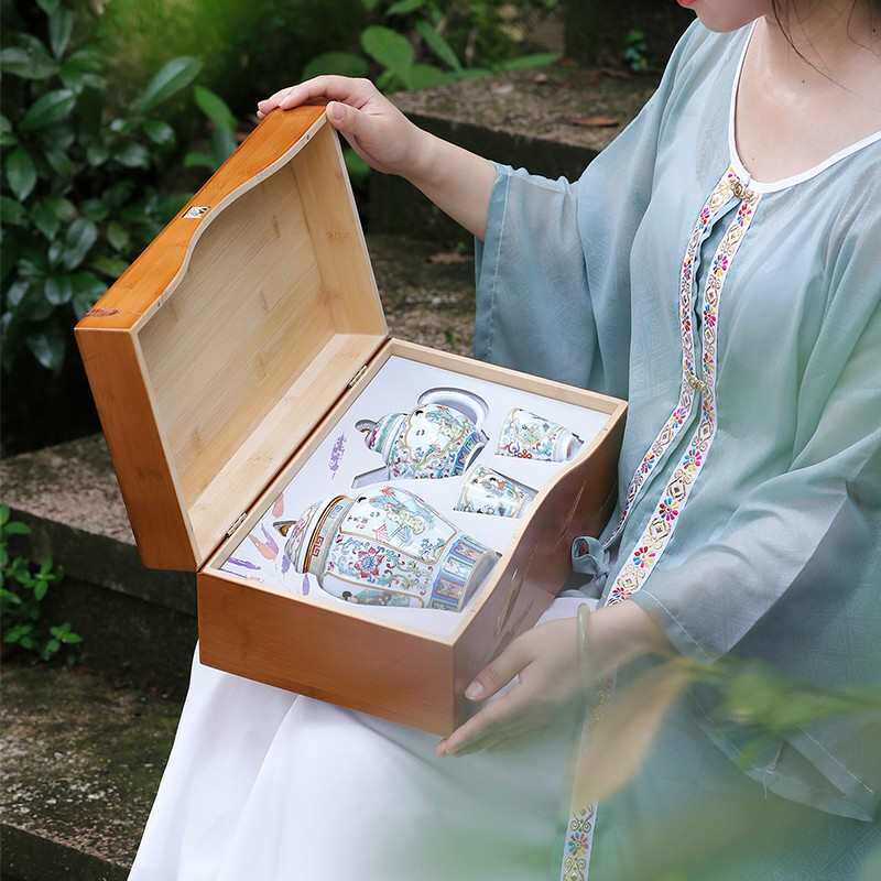 高档茶具组陶瓷罐茶叶罐一壶2杯子包装盒 绿茶红茶岩茶礼盒装空