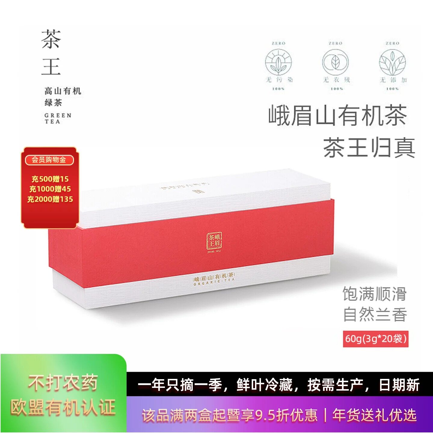 峨眉山有机茶 独芽头茶王归真60克绿茶叶礼盒装 峨眉高端有机茶