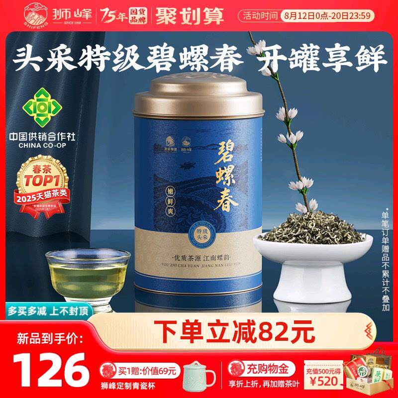 狮峰牌碧螺春2025新茶特级明前头采春绿茶叶自己喝100g官方旗店