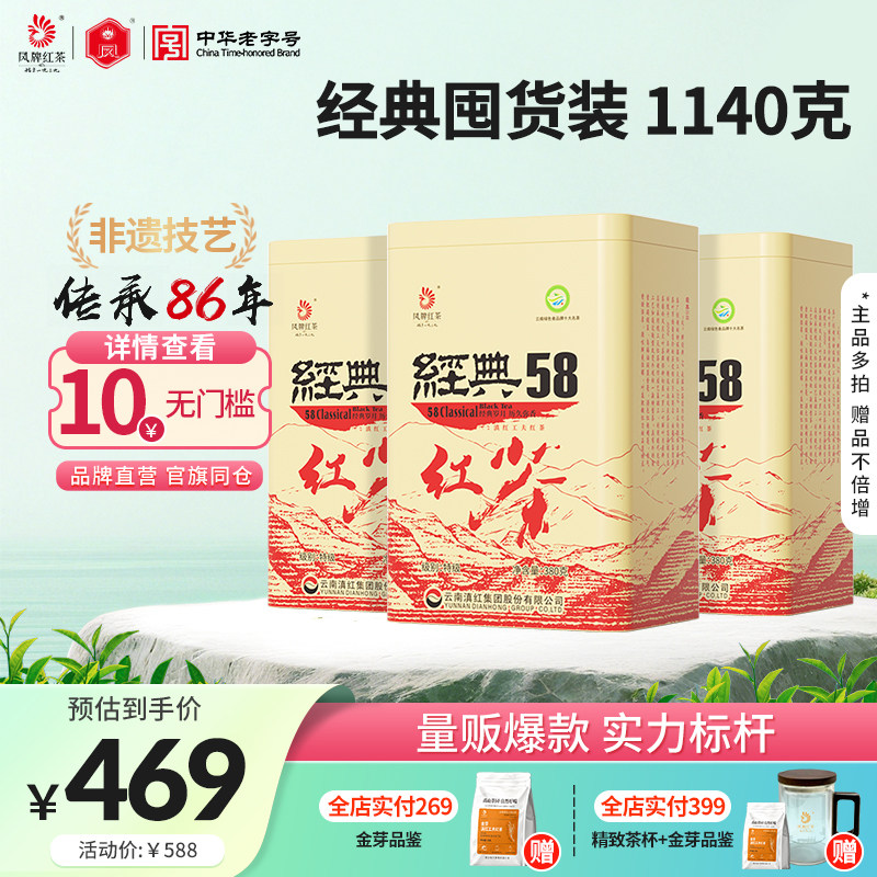 【量贩组合】凤牌红茶正宗云南滇红经典58特级茶叶380g*3罐囤货