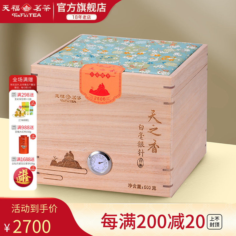天福茗茶 天之香白毫银针白茶福建福鼎2025茶叶木箱礼盒装500g
