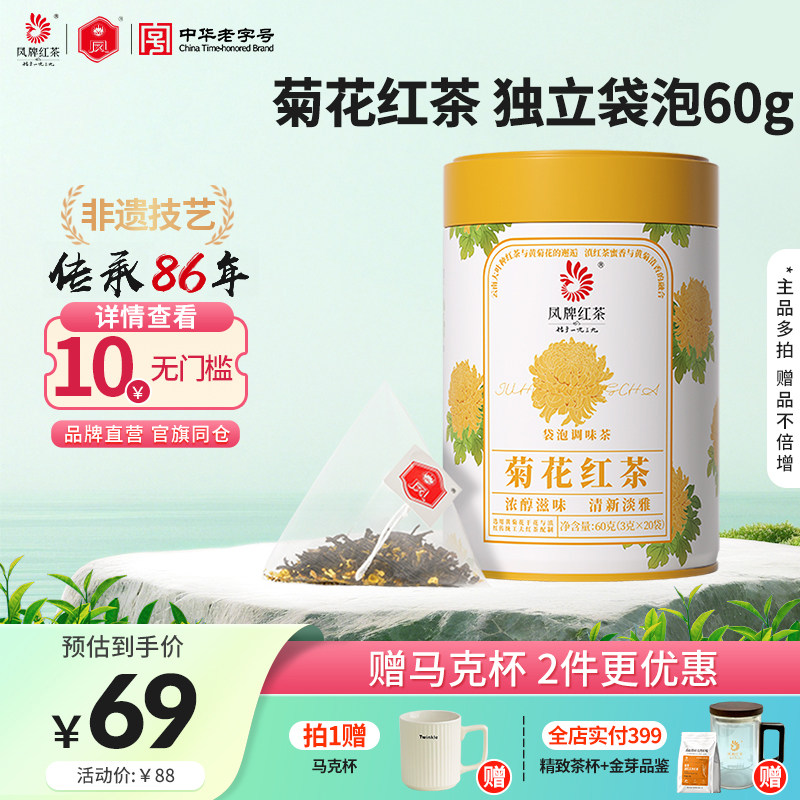 【新品】凤牌滇红菊花红茶独立袋泡茶包冷泡清甜浓香云南茶叶60g
