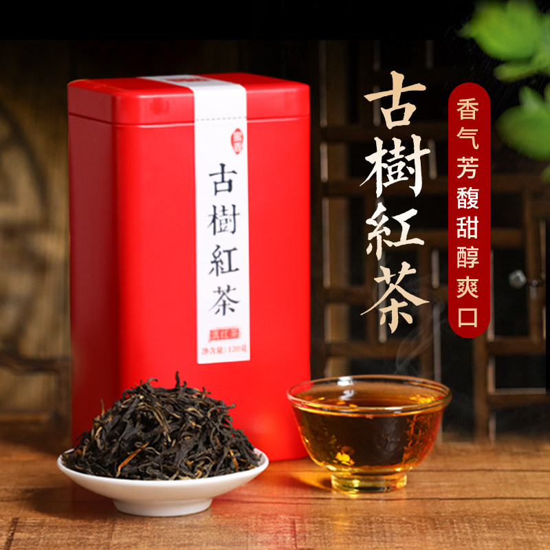 正宗古树滇红新春茶云南凤庆滇红茶花蜜香浓香型功夫茶叶120g罐装