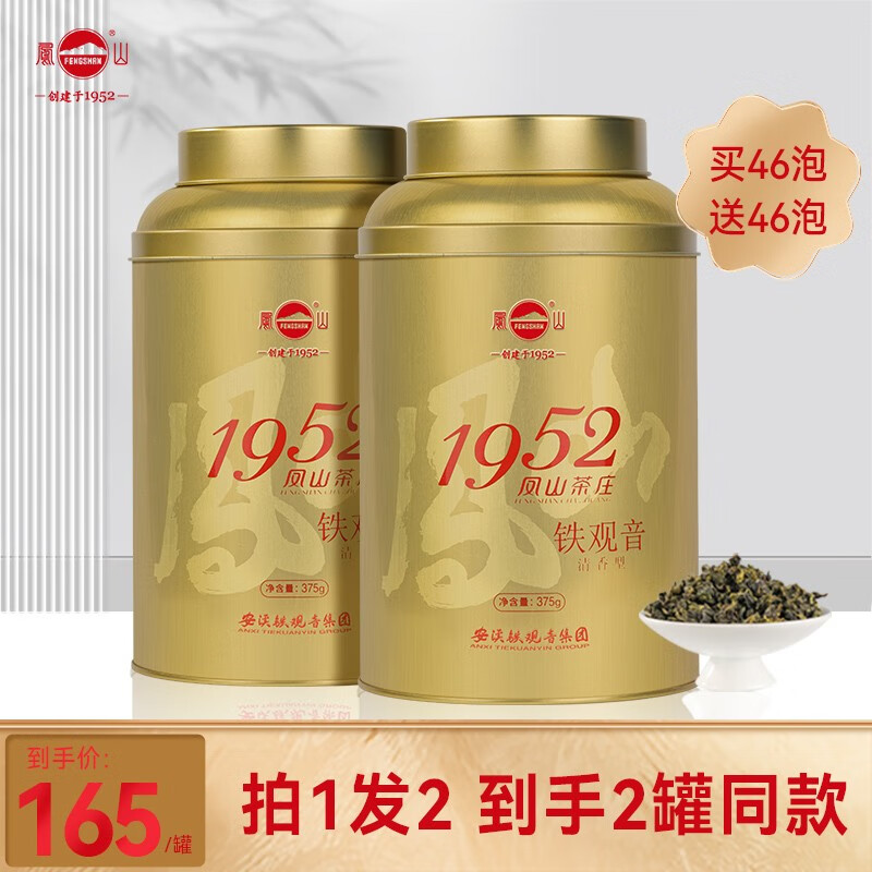凤山2025新茶买一送一安溪铁观音清香型乌龙茶送礼茶叶礼盒装375g 清香型375g(买一赠一到手2罐750g)