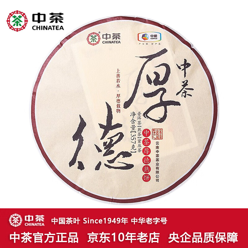 中茶牌茶叶 云南普洱茶 厚德熟茶饼 2021年 单饼装 357g*1饼