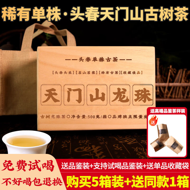 茗山榜木箱礼盒装 500克/箱 天门山 高树龄单株 古树茶叶 普洱生茶 龙珠