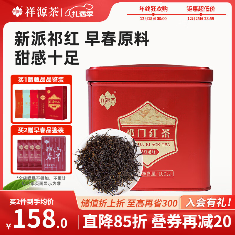 祥源茶 祁门红茶 特级早春甄品祁红毛峰甜花香 茶叶自己喝 罐装 100g