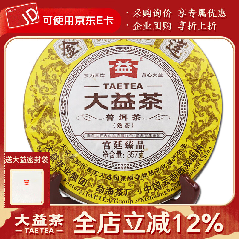 大益茶叶 普洱茶 熟茶 金针白莲 随机批次 2014年一饼357克