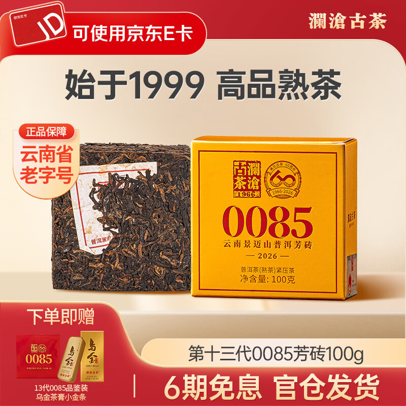 澜沧古茶0085普洱茶熟茶 2026年第十三代0085景迈古树熟普茶叶砖茶沱茶 2026年0085芳砖100g