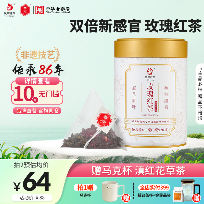 【新品】凤牌重瓣玫瑰红茶花草茶袋泡浓香调味茶云南滇红茶叶茶包