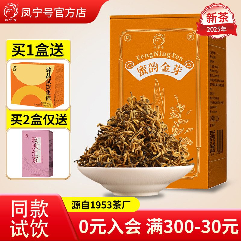 凤宁号滇红茶叶蜜香金芽蜜韵金螺红茶特级茶叶云南滇红高端纯芽头