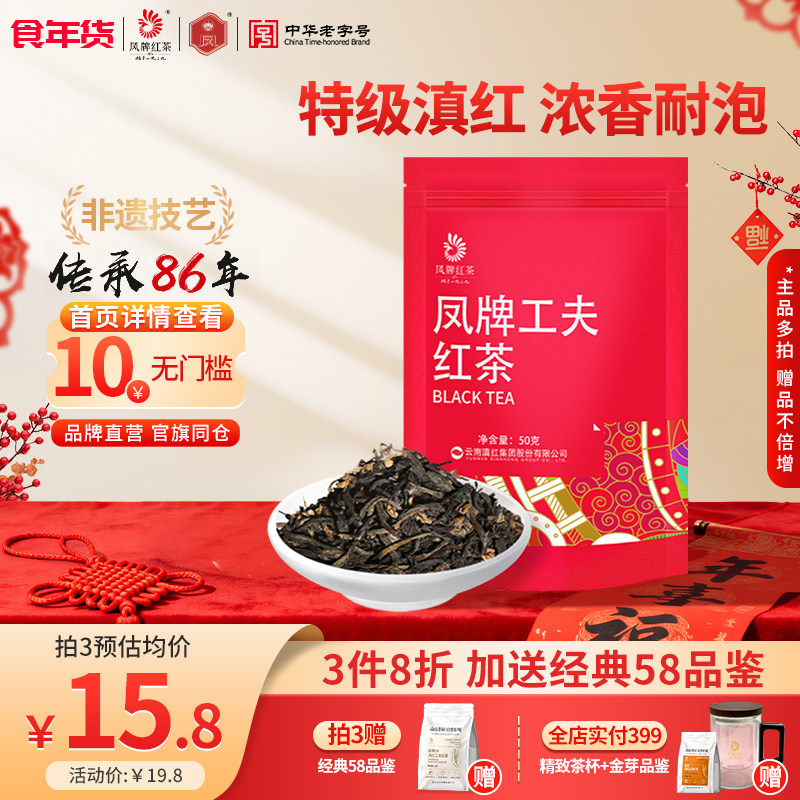 凤牌红茶正宗云南滇红茶叶特级浓香型试喝袋装50g口粮茶奶茶用