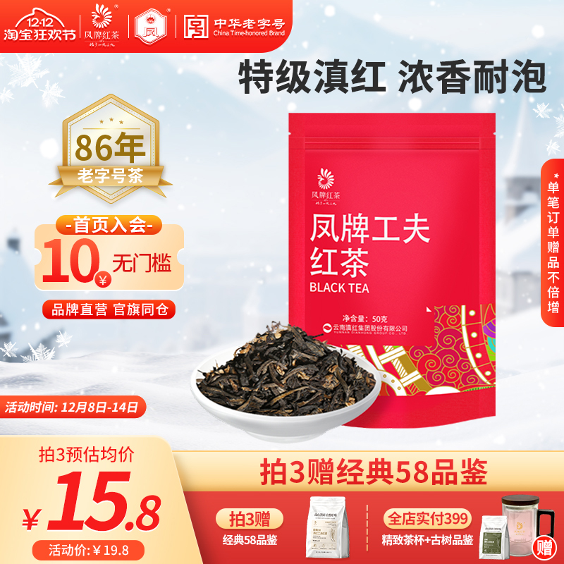 凤牌红茶经典58茶叶云南凤庆滇红茶特级新升级版方罐装浓香型380g