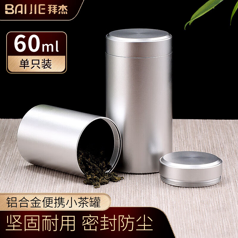 拜杰茶叶罐 铝合金便携小茶罐旅行咖啡罐密封罐防氧化储茶罐【60ml】