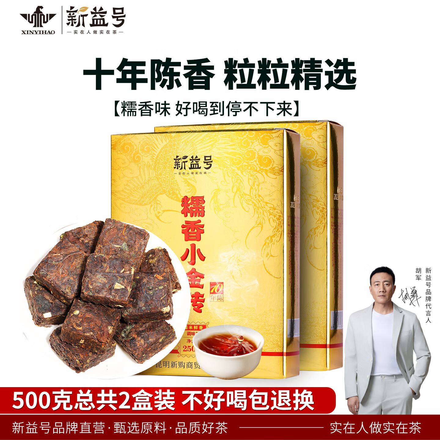 新益号糯香普洱茶熟茶十年以上小沱茶古树茶云南熟普小砖茶叶礼盒自己喝 【好口碑实惠装】250g*2盒