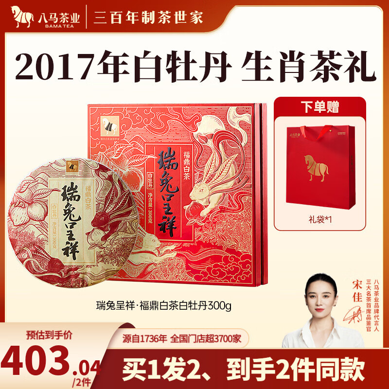 八马茶业 福鼎白茶 白牡丹 兔年生肖纪念茶 2017年茶料 送礼茶叶 礼盒装 瑞兔呈祥-300g【送试茶+礼袋】